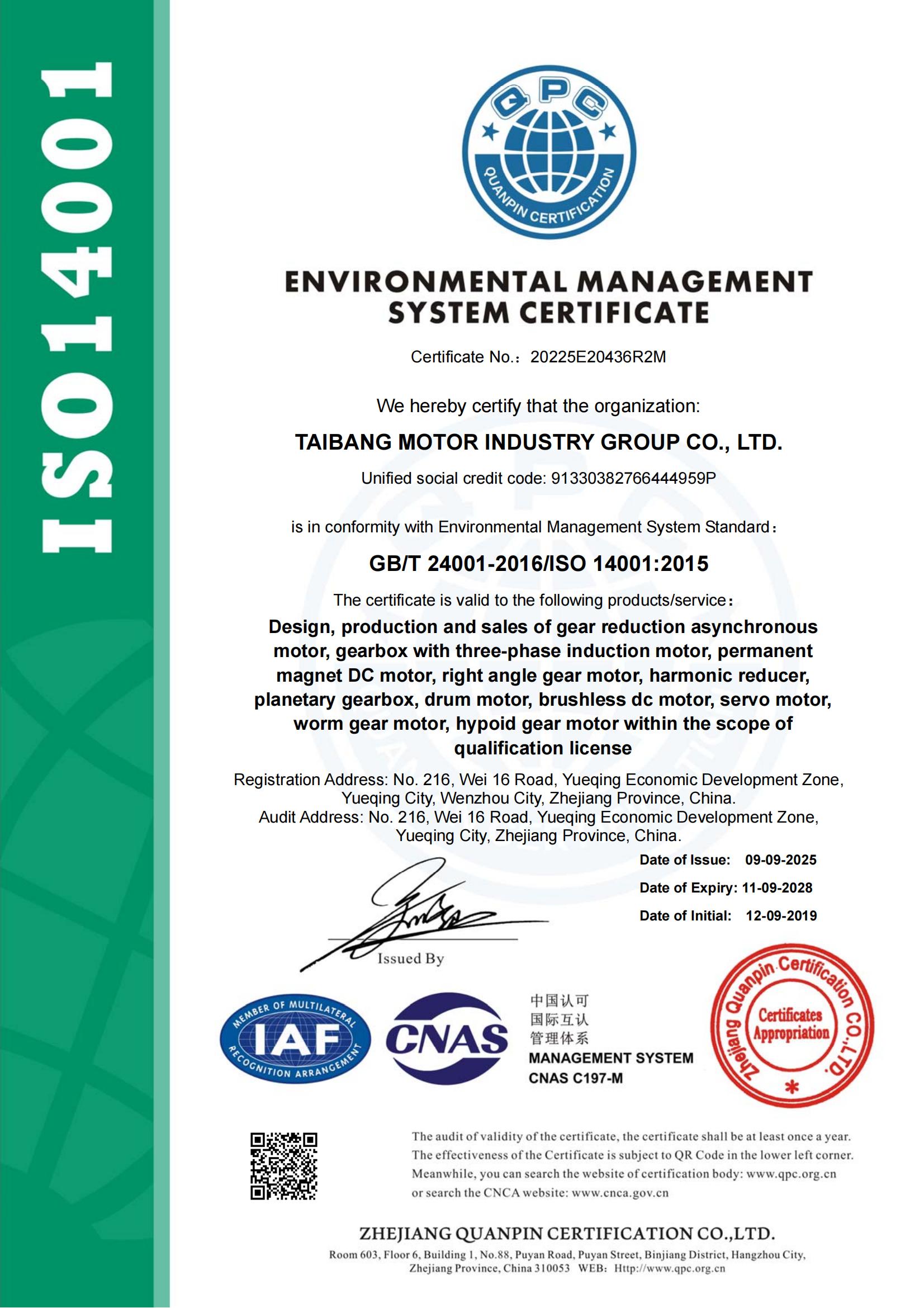 II型自愿认证证书-齿轮减速箱用三相异步电动机