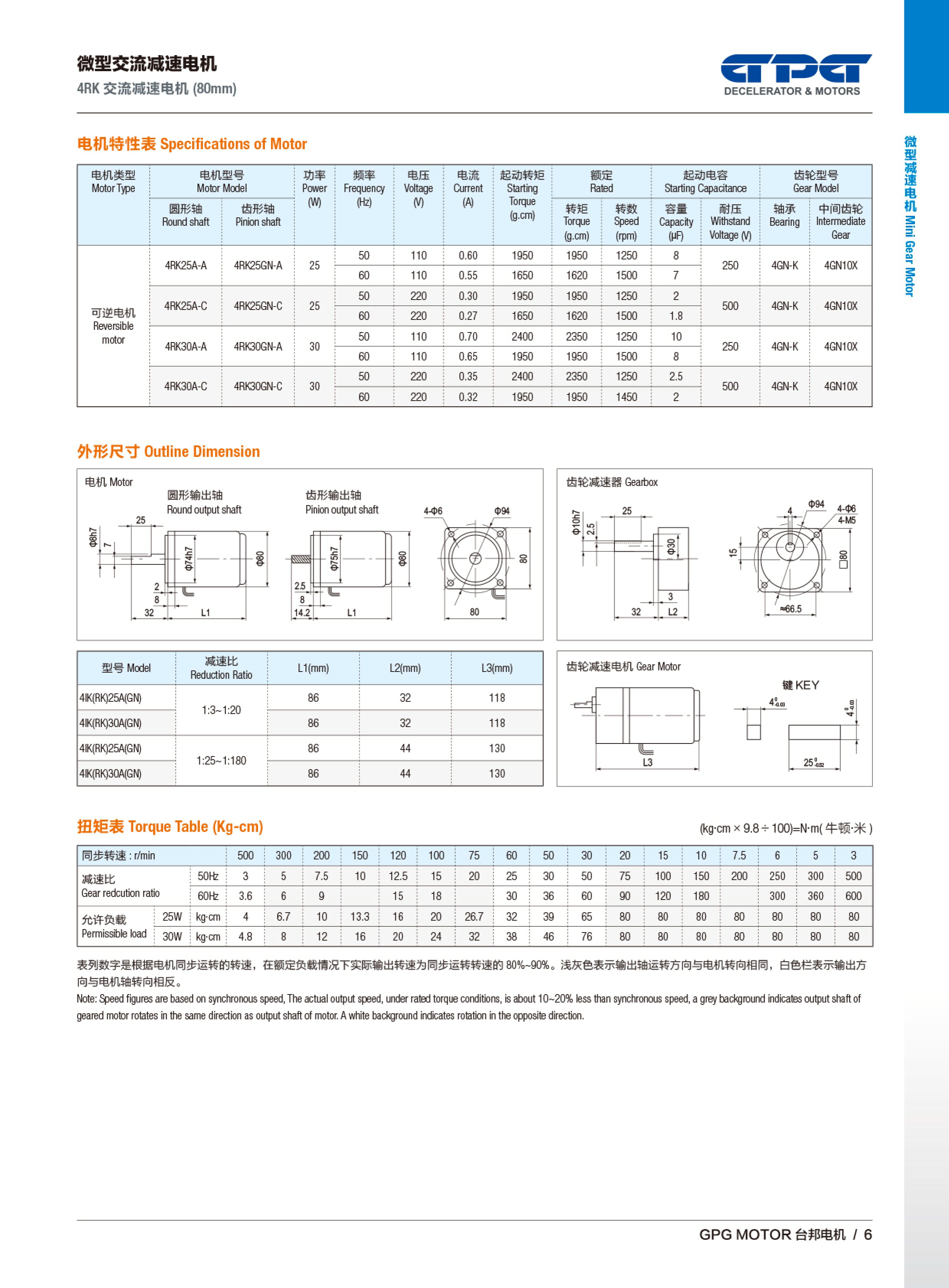 4IK/4RK 交流减速马达(80mm)
