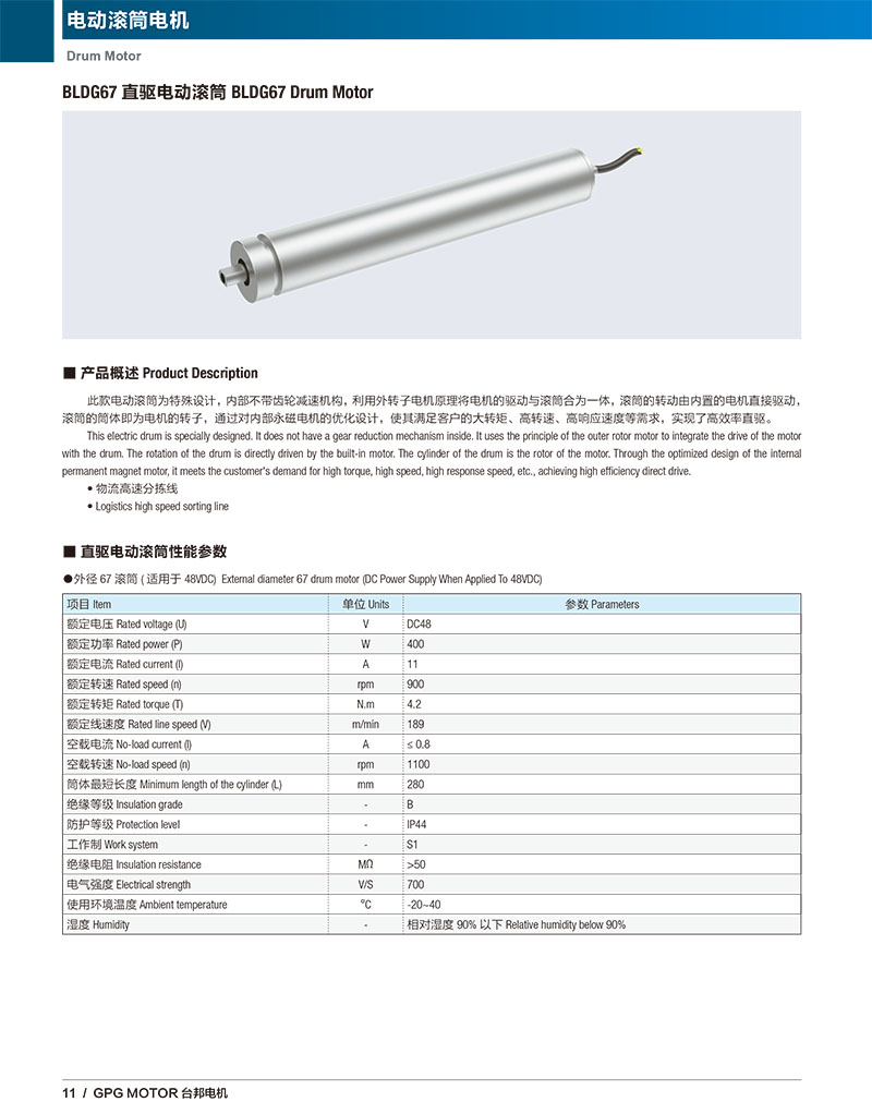 此款电动滚筒为特殊设计,内部不带齿轮减速机构,利用外转子电机原理