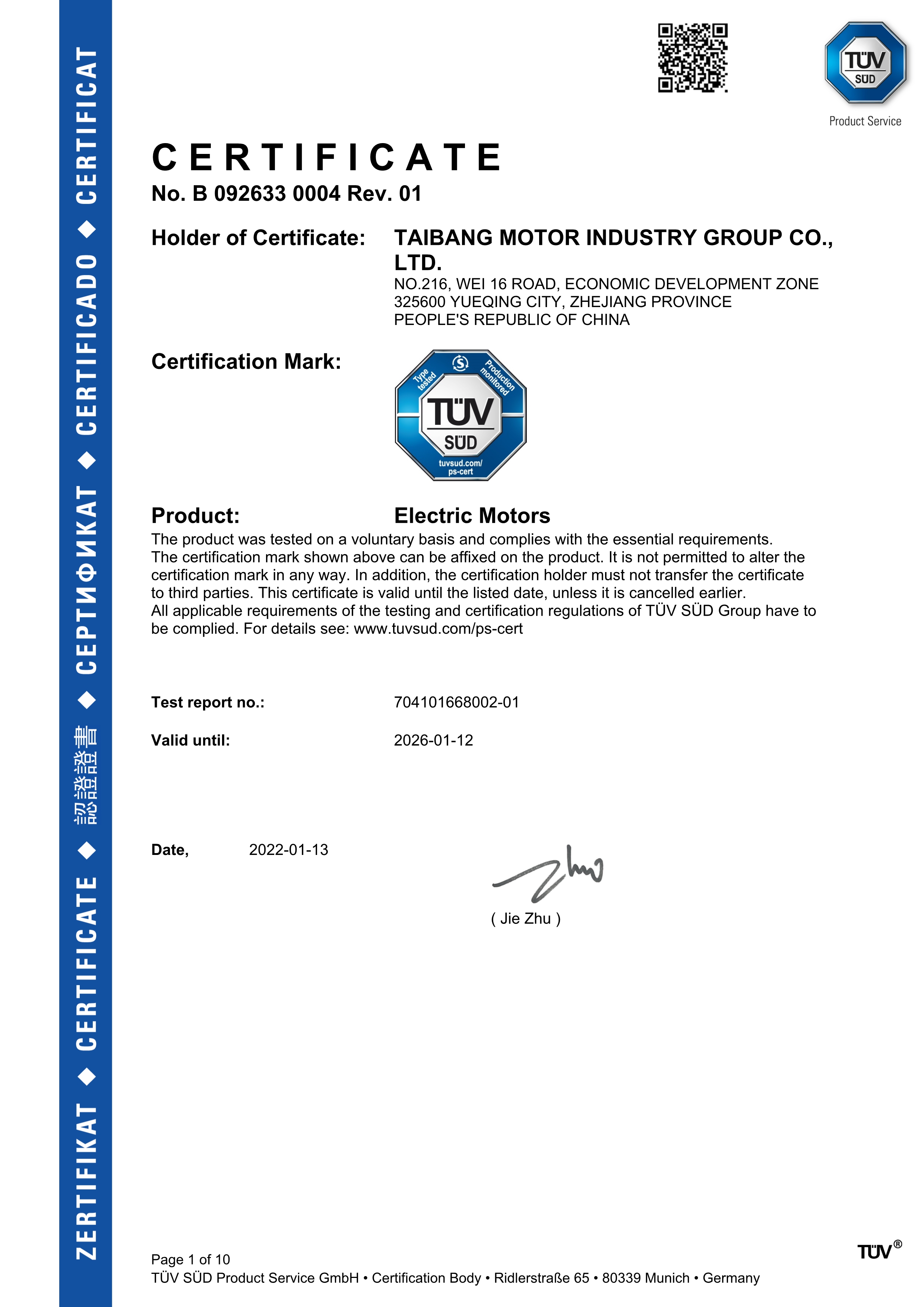 小型三相电机TUV认证
