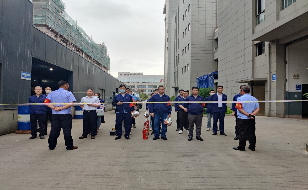 演练以“氮化车间内发生易燃易爆有毒气体泄漏”为背景展开。演练现场,根据应急演练预案,各应急处置小组准备就绪,在演练总指挥常务副总裁栾添演练开始一声令下,氮化车间警报响起,各应急处置小组快速反应,主要实施了以下九个应急处置动作:1、车间员工展开应急自救。2、指挥部按照预案科学有序进行救援指挥。3、抢修抢救组快速抢修处置设备。4、医疗救护组对中毒和创伤人员实施应急救护。5、现场保卫组设立警戒区域并高度戒严。6、疏散引导组组织事发地及周边人员紧急疏散。7、救火救援组展开事故现场灭火救援。8、通信联络组及时联络和协调多方力量参与救援。9、善后组分析事故原因,提出处置意见以及应对舆论媒体等。